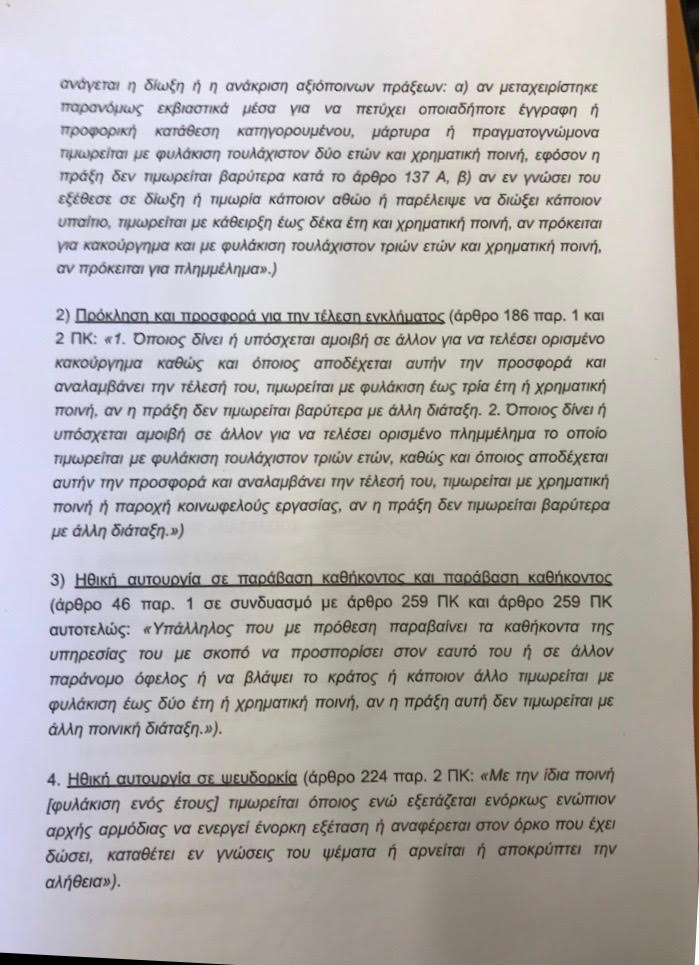 Συγκεκριμένα τα τέσσερα αδικήματα για τα οποία προκύπτουν σαφείς ενδείξεις είναι: