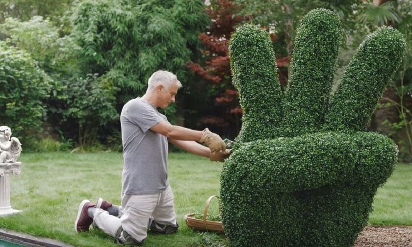 Εκεί, μεταξύ άλλων εκτελεί ο Πορτογάλος τεχνικός εκτελεί χρέη κηπουρού και περιποιείται ένα δέντρο με… τρία δάχτυλα, τα οποία συμβολίζουν τις ισάριθμες κατακτήσεις Πρέμιερ Λιγκ από την περίοδο που βρισκόταν στον πάγκο της Τσέλσι.