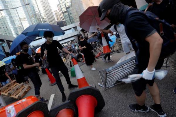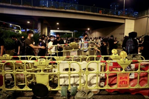 Επίσης πλήθος διαδηλωτών κατέβηκε τους δρόμους στην κεντρική συνοικία του Χονγκ Κονγκ, ενώ δεκάδες διαδηλωτές έστησαν οδόφραγμα σε κεντρικό δρόμο της.