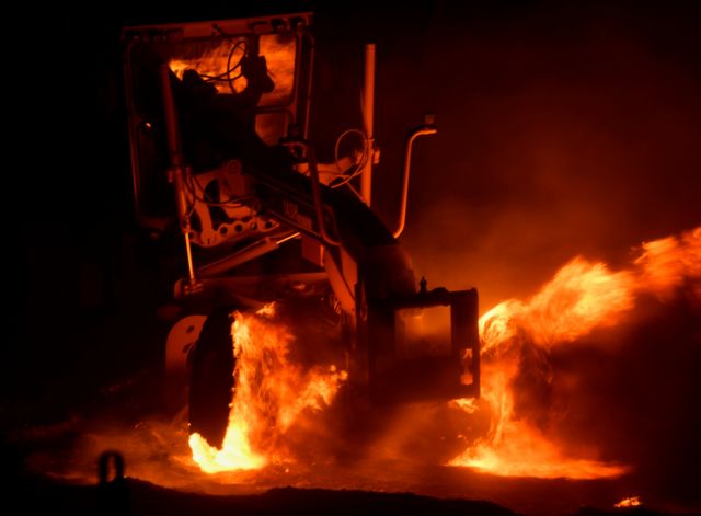 Εντυπωσιακές εικόνες από φλόγες που απειλούν οδούς και κατοικίες κυκλοφορούν στα μέσα κοινωνικής δικτύωσης.