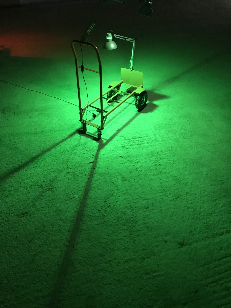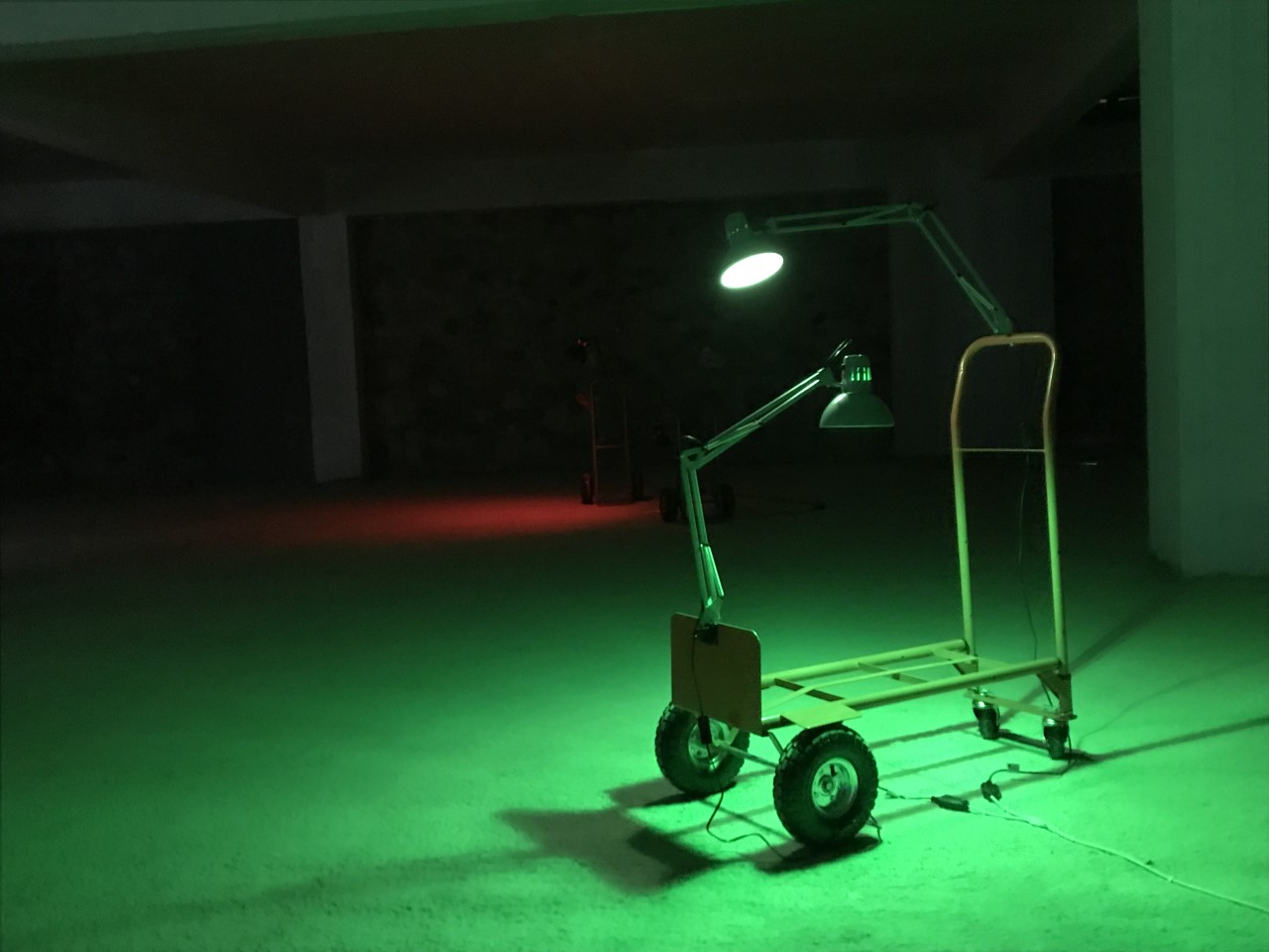Στα έργα «Inthemiddleoftheway» του Κώστα Παππά, μια σειρά από υβριδικές κατασκευές από μεταλλικά καρότσια μεταφοράς, φωτιστικά και λάμπες εκπέμπουν θερμό φως και «φωτοσυνθέτουν» τις έννοιες των μηνυμάτων που βρίσκονται χαραγμένες σε μέρος της επιφάνειάς τους ή προβάλλονται στον τοίχο. Μοιάζουν με «μηχανές», κάτι ανάμεσα σε ανθρωπόμορφα ρομπότ, εργαλεία ή διακοσμητικές εγκαταστάσεις, σε κατάσταση αναμονής για τη λειτουργία που θα τους ανατεθεί.