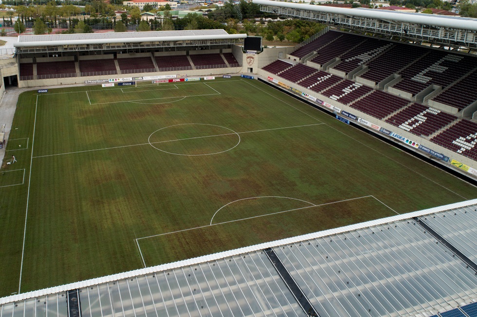 Ήδη από χτες Τρίτη 22/10/2019 η ανάδοχος εταιρεία, με την ολοκλήρωση της τοποθέτησης του χλοοτάπητα πέρασε στην 6 φάση των εργασιών. Η φάση αυτή περιλαμβάνει τη δεύτερη επισπορά του χλοοτάπητα (η πρώτη έγινε στις εγκαταστάσεις της εταιρείας πριν το κόψιμό του και θα ακολουθήσει η 3 μετά τον αγώνα με τη Λαμία), τον ψεκασμό και τη λίπανση του, καθώς και την αμμοδιανομή της επιφάνειας.