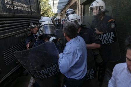Οι αστυνομικοί τους απώθησαν, με αποτέλεσμα να υπάρξουν μικρο-συμπλοκές.
