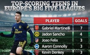 To νέο «αστεράκι» της Άρσεναλ έφτασε τα 7 γκολ σε ισάριθμες συμμετοχές με τους «κανονιέρηδες» τη φετινή σεζόν και αποτελεί τον πρώτο έφηβο- σκόρερ στα πέντε μεγάλα πρωταθλήματα.