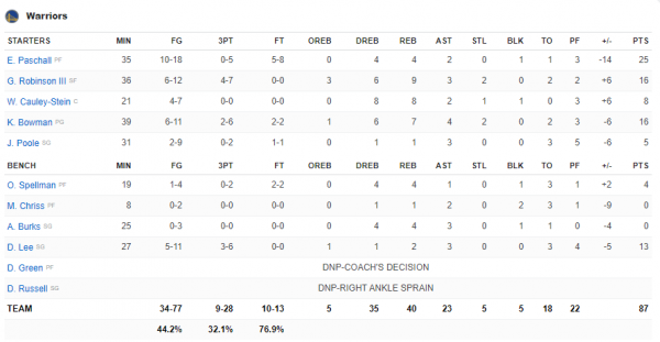 Οι Γουόριορς συνεχίζουν να μην θυμίζουν σε τίποτα την ομάδα του πρόσφατου παρελθόντος όχι μόνο λόγω των αποτελεσμάτων αλλά και της εικόνας τους στο παρκέ όπου βέβαια παρατάσσονται με πολλές και κομβικές απουσίες.