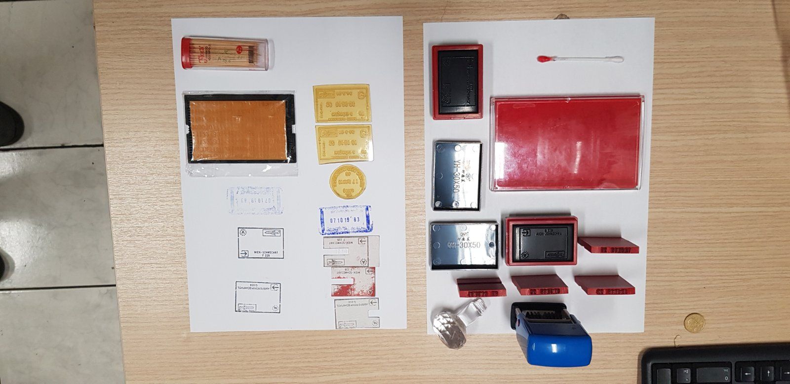Σε έρευνα που ακολούθησε στην οικία των συλληφθέντων, βρέθηκαν 17 παραποιημένα-πλαστά διαβατήρια, 3 ταυτότητες, πλήθος σφραγίδων-αριθμοσφραγίδων, καθώς και άλλα σύνεργα παραποίησης διαβατηρίων και χαρτονομίσματα διαφόρων χωρών.