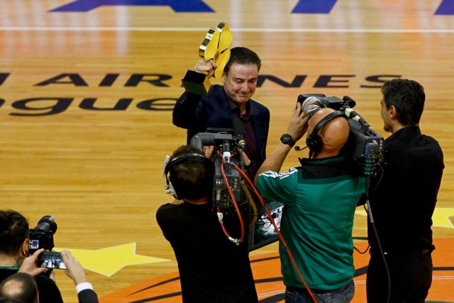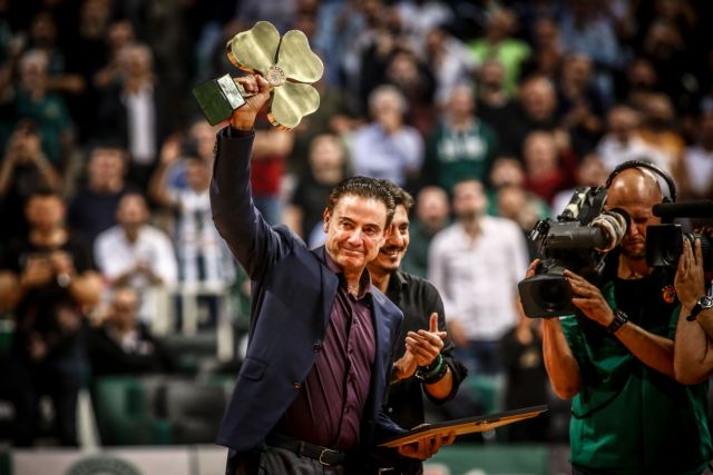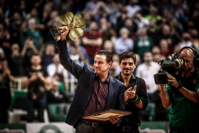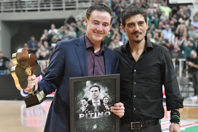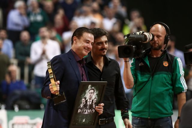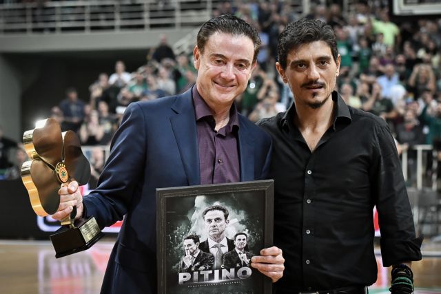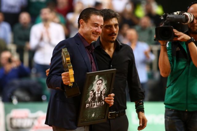 Ο Γιαννακόπουλος έδωσε στον Πιτίνο ένα τεράστιο τριφύλλι, με τα έξι αστέρα πάνω και μια πλακέτα που πάνω είναι το πρόσωπο του Αμερικανού προπονητή. Ο Πιτίνο με το χαμόγελο στα χείλη ανταπέδωσε με χειροκρότημα την αποθέωση στον κόσμο.