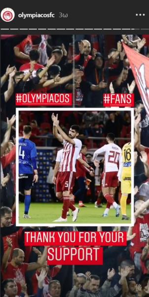 Το μήνυμα της ερυθρόλευκης ΠΑΕ στο instagram, ανέφερε χαρακτηριστικά: «Σας ευχαριστούμε για την υποστήριξη».