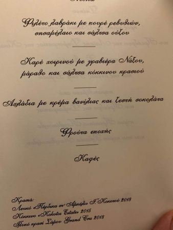Κατά τα αλλά το δείπνο στο Προεδρικό ήταν αντίστοιχο των δείπνων που προσφέρθηκαν σε πλανητάρχες και σε προέδρους της Γαλλίας. Ο σεφ του Προεδρικού Στέφανος ετοίμασε λαβράκι με πουρέ ρεβιθιών, καρέ χοιρινού με γραβιέρα Νάξου, μάραθο με σάλτσα κόκκινων φρούτων, αχλάδι με κρέμα βανίλιας πασπαλισμένο με ζέστη σοκολάτα, ενώ η παιδική χορωδία της Εθνικής Λυρικής Σκηνής τραγούδησε το «Λεμονάκι μυρωδάτο», τη «Ψαροπούλα», και ένα κινεζικό τραγούδι «Το γιασεμί».