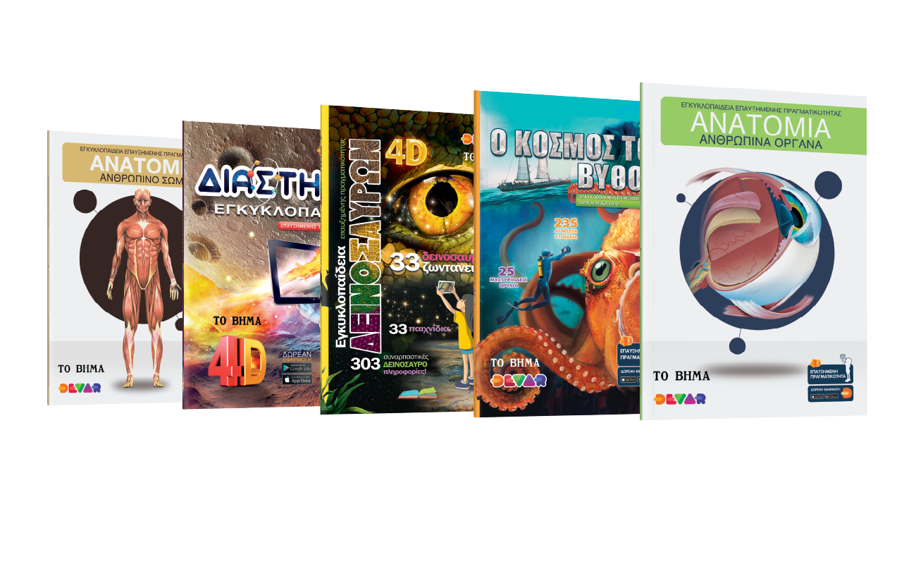 «ΤΟ ΒΗΜΑ της Κυριακής» κάνει ένα μεγάλο βήμα στον κόσμο της επαυξημένης πραγματικότητας. Για πρώτη φορά ελληνική εφημερίδα προσφέρει στους αναγνώστες την ευκαιρία να γνωρίσουν τον μαγικό κόσμο των βιβλίων που… ζωντανεύουν και μαγεύουν μικρούς και μεγάλους! Η νέα παγκόσμια τάση για τα βιβλία φέρνει μπροστά στα μάτια μας εικόνες που συναρπάζουν, από μυθικά πλάσματα μέχρι το ηλιακό σύστημα και το ανθρώπινο σώμα με την εντυπωσιακή αναπαράσταση των οργάνων με πλήρη εγκυκλοπαιδική ανάλυση! Με τη χρήση επαυξημένης πραγματικότητας και με έναν πανεύκολο τρόπο, βρισκόμαστε να «αγκαλιάζουμε» δεινόσαυρους ή να περιηγούμαστε ανάμεσα σε πλανήτες ενώ η εξερεύνηση του ανθρώπινου σώματος αποτελεί έναν πιο εμβριθή τρόπο από ό,τι αν θα γινόταν σε μάθημα γενικής ανατομίας. Μαζί με το παιχνίδι και την… ψηφιακή περιήγηση, διαβάζουμε εγκυκλοπαιδικές λεπτομέρειες και στοιχεία που μας προσφέρουν απαραίτητες γνώσεις για μικρούς και μεγάλους μέσα από εικόνες, βίντεο, κείμενα ή τρισδιάστατα αντικείμενα.