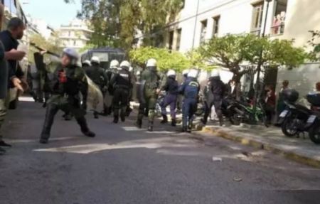 Οι άνδρες των ΜΑΤ χτύπησαν με τα γκλομπ και έριξαν μπουνιές σε όσους περίμεναν τους συλληφθέντες, αναφέρουν οι καταγγελίες.