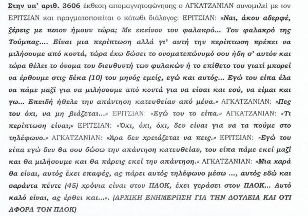 Οι συνομιλίες από νόμιμες καταγραφές που περιλαμβάνονται στη δικογραφία παρουσιάζουν τον αρχηγό της εγκληματικής οργάνωσης που ανέλαβε τη δουλειά να συνομιλεί με αυτόν που την έκανε και να κάνει σαφές ότι η υπόθεση αφορά τον ΠΑΟΚ και ότι η επαφή γίνεται με παράγοντα του ΠΑΟΚ.