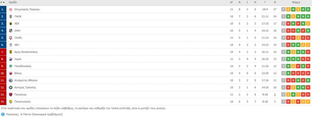 Υπενθυμίζεται πως την επόμενη Κυριακή (1/12, 19:30), Ολυμπιακός και ΠΑΟΚ διασταυρώνουν τα «ξίφη» τους στο «Γ. Καραϊσκάκης», στο ντέρμπι τίτλου της 12ης αγωνιστικής.