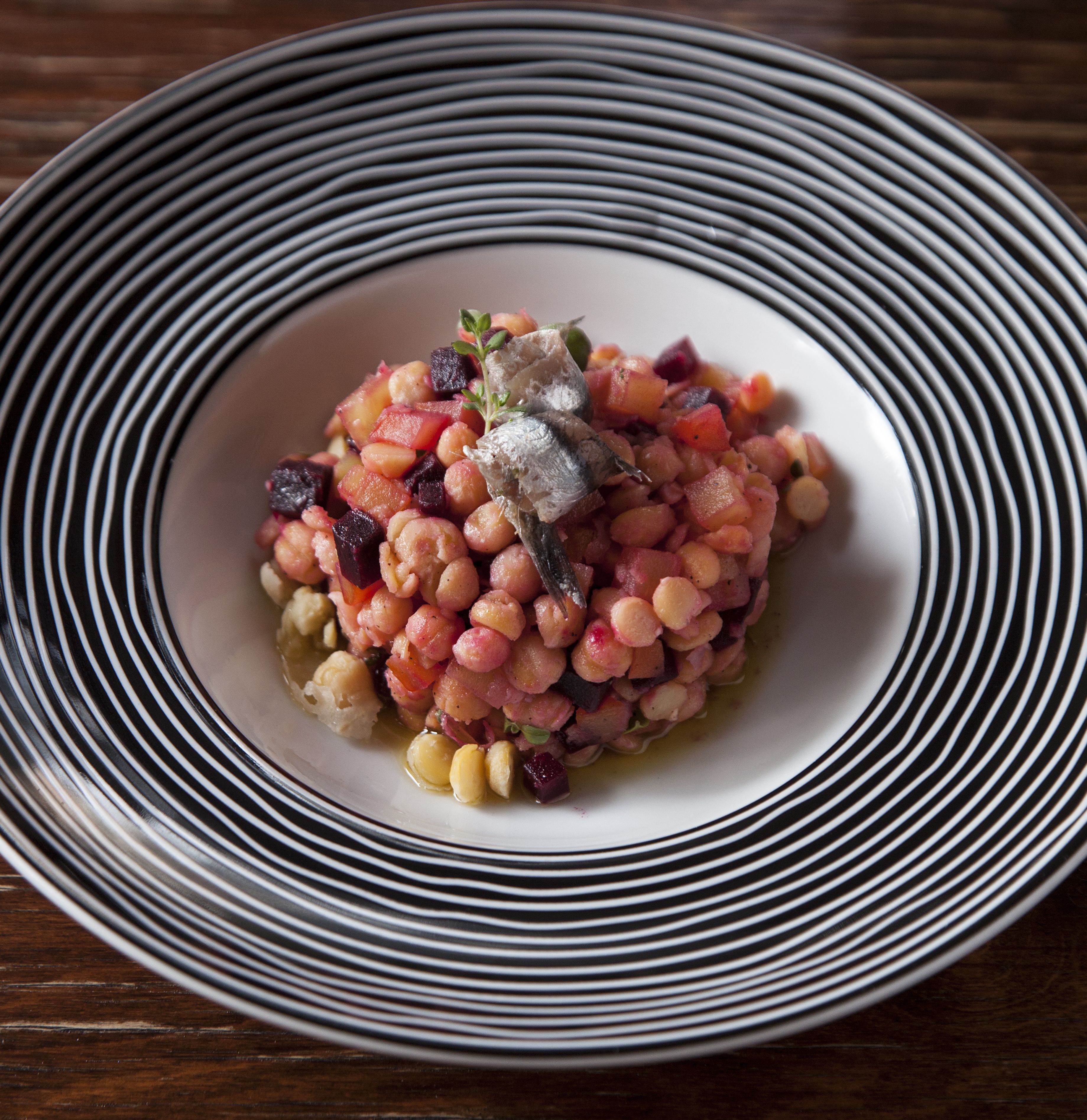 Βράζουμε τα παντζάρια για 15-20 λεπτά, τα στραγγίζουμε και τα αφήνουμε να κρυώσουν. Τα μαρινάρουμε με αλάτι, πιπέρι, ελαιόλαδο και τα μυρωδικά. Τα ψιλοκόβουμε και τα ανακατεύουμε σε ένα βαθύ μπολ με τα ρεβίθια. Στρώνουμε στο πιάτο.