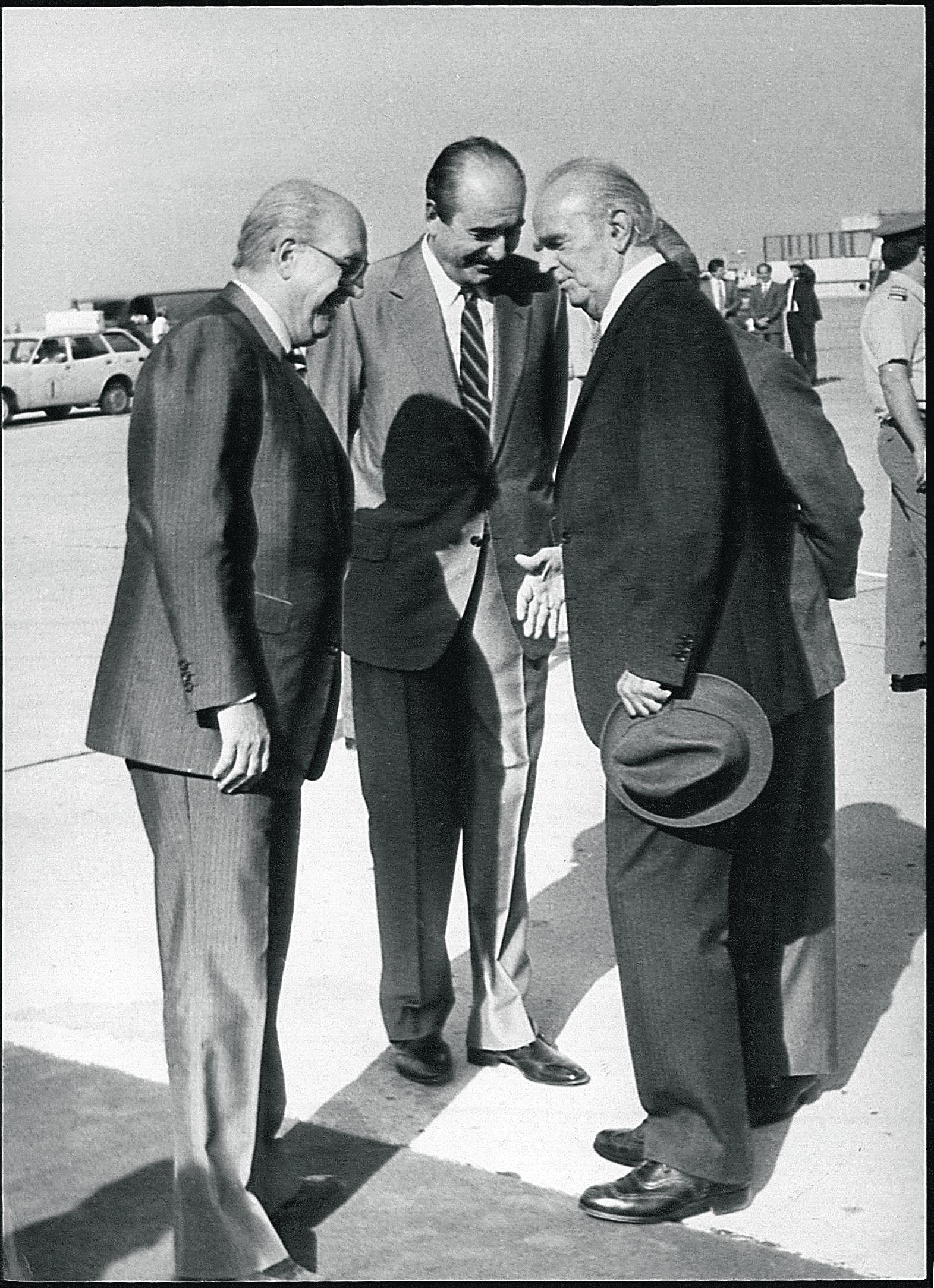 Ανδρέας Παπανδρέου, Κωνσταντίνος Μητσοτάκης και Κωνσταντίνος Καραμανλής στο αεροδρόμιο του Ελληνικού.
