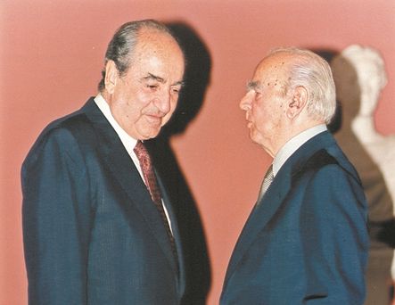 Ο Κωνσταντίνος Καραμανλής ορκίζεται για δεύτερη φορά Πρόεδρος της Δημοκρατίας το 1990 υπό το βλέμμα του Κωνσταντίνου Μητσοτάκη.