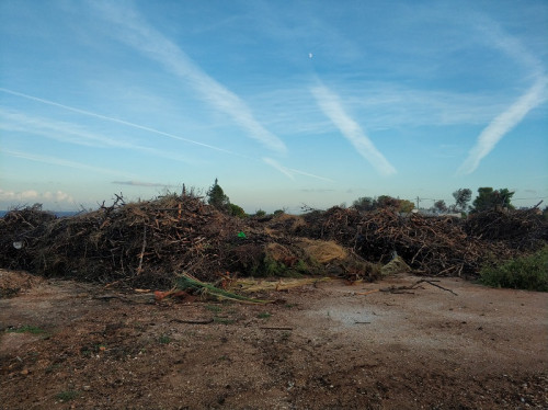 Πλέον υπάρχει μία νέα άτυπη προθεσμία μέχρι τον Φεβρουάριο, προκειμένου να αδειάσει πλήρως η έκταση, η οποία όσο προχωρούν οι υλοτομήσεις θα γεμίζει κι άλλο, ενώ όπως αναφέρουν από το υπουργείο Υποδομών με την αποκομιδή των καμένων κλαδιών από το οικόπεδο πρόκειται να ασχοληθεί η ΑΜΚΕ και όχι το υπουργείο.