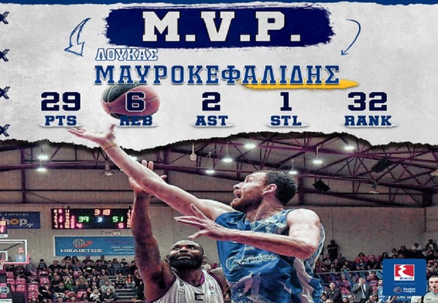 Για δεύτερη φορά στην φετινή Basket League ο Λουκάς Μαυροκεφαλίδης αναδεικνύεται MVP της αγωνιστικής.