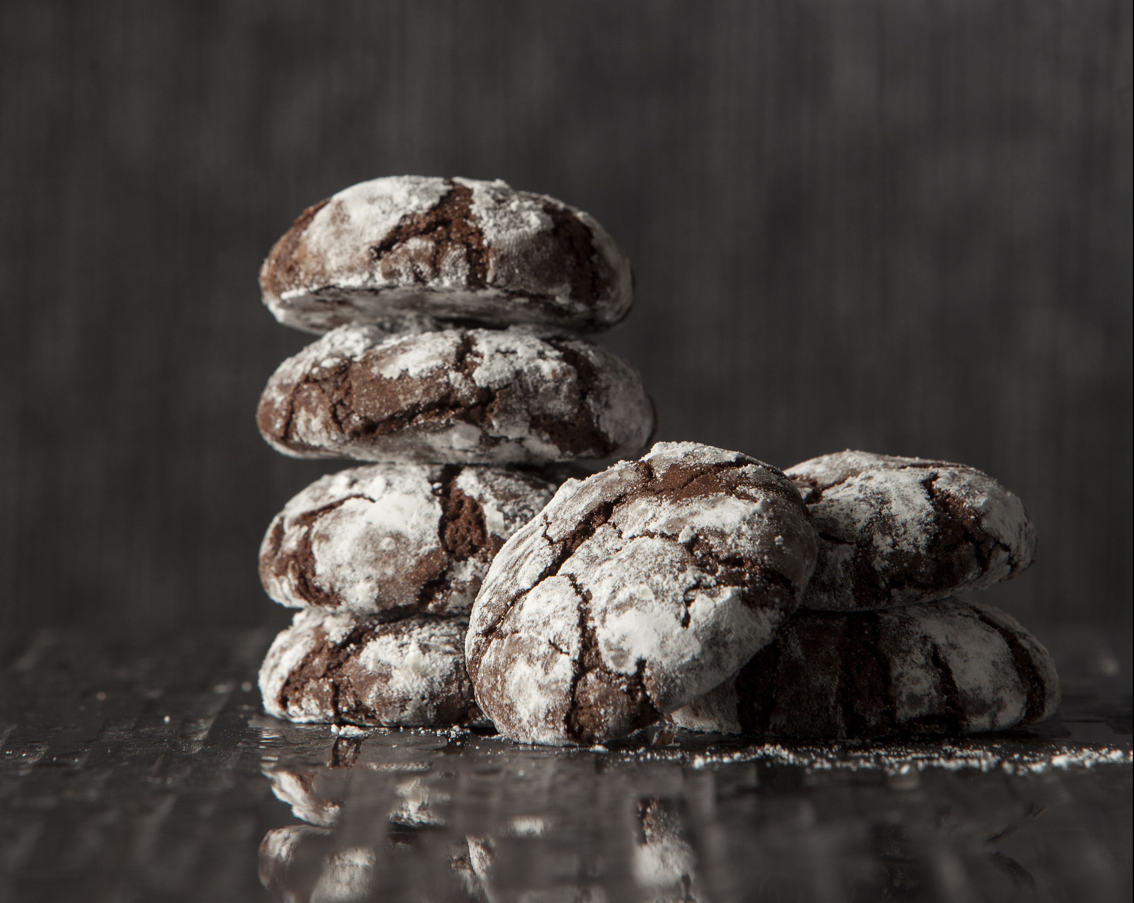 Προθερμαίνουμε τον φούρνο στους 180°C και ντύνουμε τη λαμαρίνα του φούρνου με λαδόκολλα. Πλάθουμε τη ζύμη σε μικρά μπαλάκια βάρους 16 – 18 γρ. Βάζουμε σε ένα μπολ τη ζάχαρη άχνη και ρολάρουμε μέσα τα μπαλάκια, ώστε να καλυφθούν εξ ολοκλήρου. Τα βάζουμε στη λαμαρίνα (όσα χωράνε), αφήνοντας κάποια απόσταση ανάμεσά τους για να μπορούν να απλωθούν. Τα ψήνουμε για 8 λεπτά και επαναλαμβάνουμε μέχρι να ψήσουμε όλα τα μπισκότα.