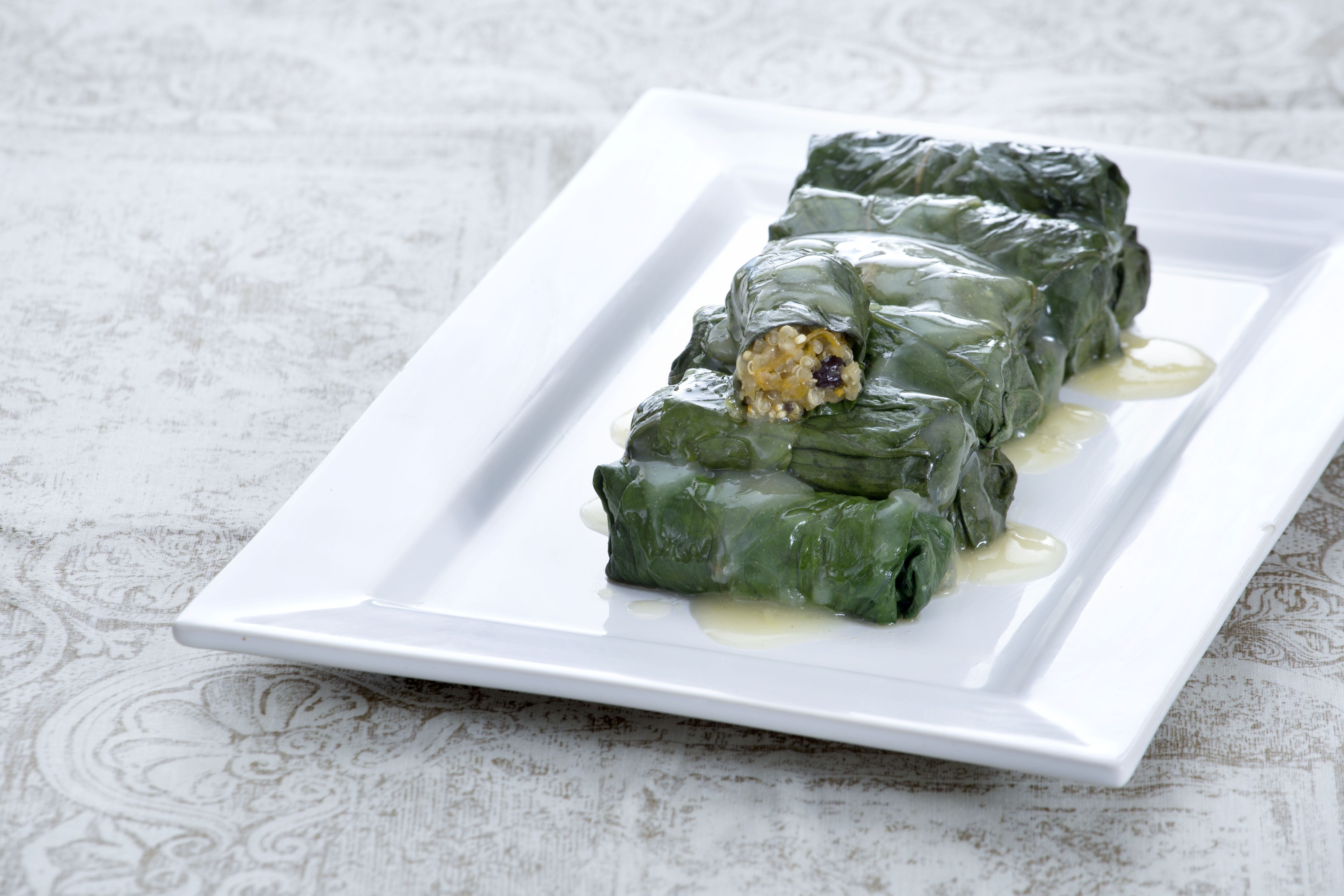 Αναμειγνύουμε σε ένα μπολ τα τριμμένα λαχανικά (όχι το ξερό κρεμμύδι), τον μάραθο, τις σταφίδες και την κινόα. Αλατίζουμε και ανακατεύουμε καλά. Παίρνουμε ένα μαρουλόφυλλο, αφαιρούμε το σκληρό μέρος με μικρό μαχαιράκι, το απλώνουμε στον πάγκο εργασίας, βάζουμε στην άκρη του 1 κ.σ. γέμιση, διπλώνουμε τις άκρες προς τα μέσα και ρολάρουμε όπως κάνουμε με τα ντολμαδάκια. Επαναλαμβάνουμε μέχρι να τελειώσουν τα υλικά μας.