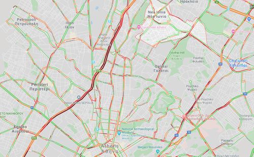 Η κίνηση διεξάγεται με πολύ χαμηλές ταχύτητες από το ύψος της Ιεράς Οδού μέχρι τη Νέα Φιλαδέλφεια.