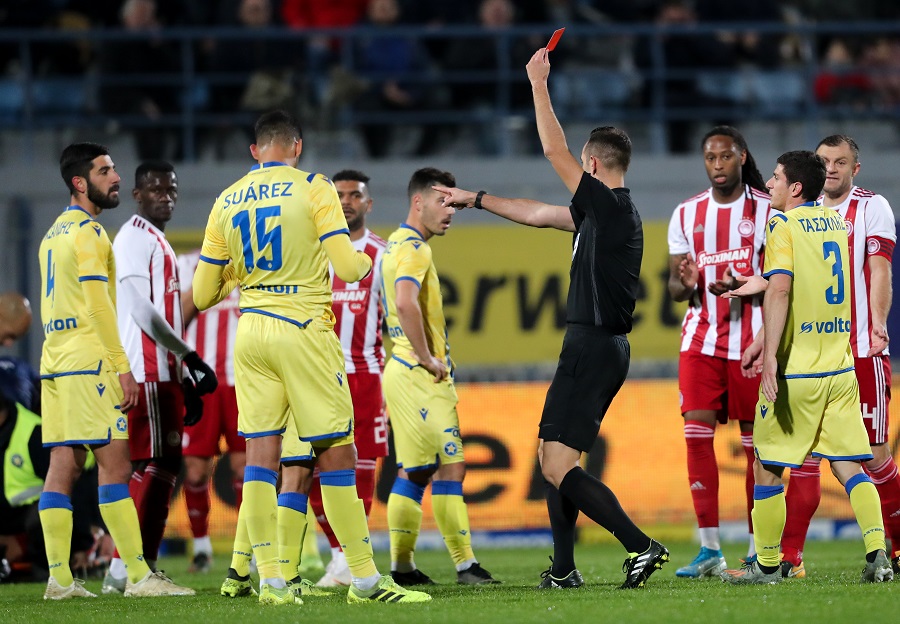 Τάκλιν από αυτά που τερματίζουν καριέρες ήταν αυτό του Πασαλίδη στον Γκιγιέρμε στο 14′ της αναμέτρησης του Αστέρα Τρίπολης με τον Ολυμπιακό.