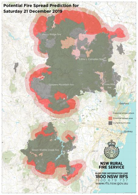 Σχεδόν 100 πυρκαγιές μαίνονταν το Σάββατο το απόγευμα (τοπική ώρα) σε ολόκληρη τη Νέα Νότια Ουαλία, με έξι να έχουν χαρακτηριστεί σε επίπεδο έκτακτης ανάγκης. Περίπου 10.000 έκτακτο προσωπικό θα εργάζεται σε ολόκληρη την πολιτεία.