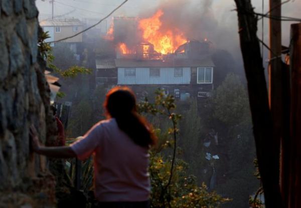 Μαίνεται από χθες η καταστροφική πυρκαγιά στα ορεινά περίχωρα της τουριστικής πόλης Βαλπαραΐσο, στη δυτική Χιλή.