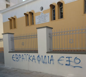 Τα αντισημιτικά συνθήματα που έγραψαν άγνωστοι στη συναγωγή Τρικάλων καταδίκασε το Κεντρικό Ισραηλιτικό Συμβούλιο Ελλάδος.