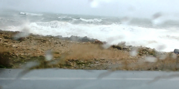 Άκρως επικίνδυνη ήταν μετά το μεσημέρι η οδήγηση στην εθνική οδό Χανίων – Ρεθύμνου, στο ύψος του Γερανίου και του Πετρέ, καθώς τα τεράστια κύματα έφταναν μέχρι τον δρόμο λόγω των έντονων καιρικών φαινομένων.