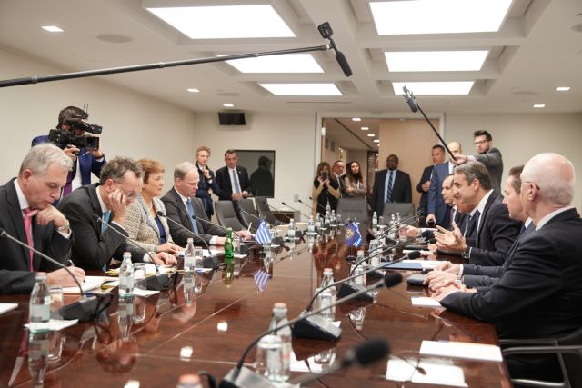 Ο Κυριάκος Μητσοτάκης έκανε αυτή την τοποθέτηση μετά την κατ’ ιδίαν συζήτησή του με τη Γενική Διευθύντρια του Ταμείου Κρισταλίνα Γκεοργκίεβα και κατά την έναρξη της διευρυμένης συνάντησης στην οποία τον συνόδευαν ο υπουργός Ανάπτυξης Άδωνις Γεωργιάδης, ο κυβερνητικός εκπρόσωπος Στέλιος Πέτσας, ο οικονομικός σύμβουλος του πρωθυπουργού Άλεξ Πατέλης και ο εκπρόσωπος της Ελλάδας στο Δ.Ν.Τ, Μιχάλης Ψαλιδόπουλος.