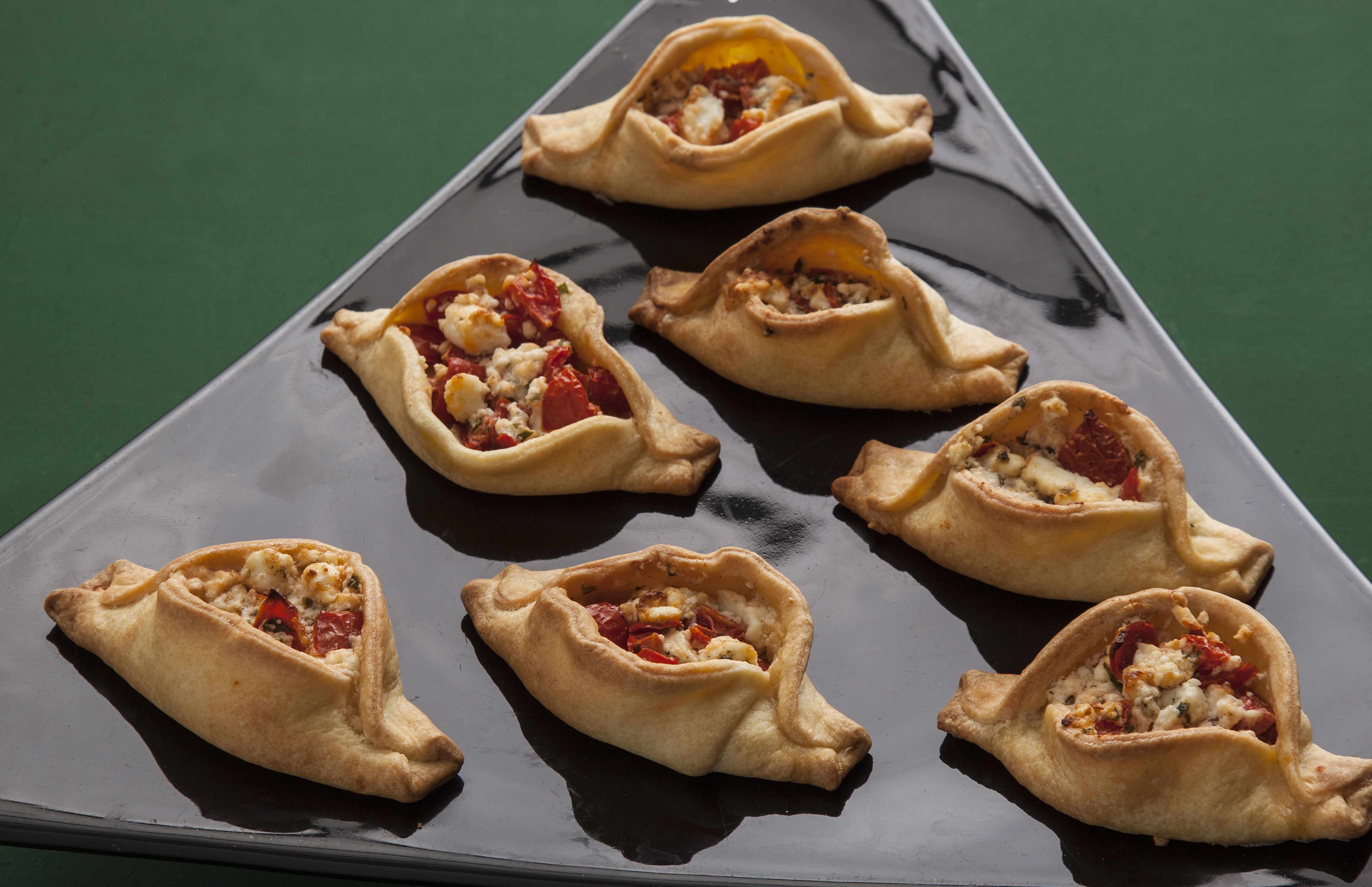 Προθερμαίνουμε τον φούρνο στους 180°C. Ξεδιπλώνουμε τα φύλλα στον πάγκο εργασίας μας και τα κόβουμε σε δίσκους με ένα στρογγυλό κουπάτ διαμέτρου 10 εκ. Αν η ζύμη είναι λεπτή βάζουμε 2 δίσκους τον ένα πάνω στον άλλο.