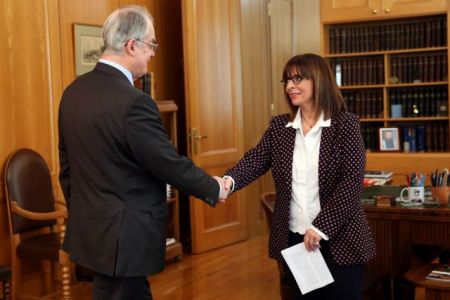 Ο κ. Τασούλας μετέβη στο γραφείο της Αικατερίνης Σακελλαροπούλου στο Συμβούλιο της Επικρατείας προκειμένου να της επιδώσει το αποτέλεσμα της Εθνικής Αντιπροσωπείας και να της ανακοινώσει ότι την εξέλεξε για Πρόεδρο της Δημοκρατίας.