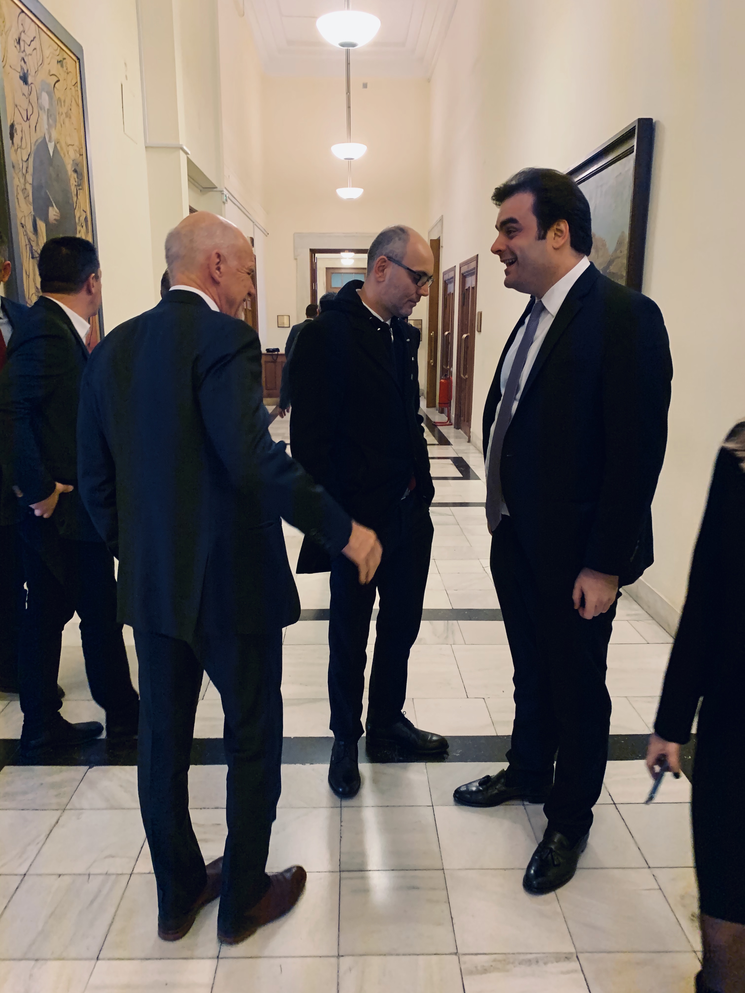 Υπήρξε μια σημαντική συνάντηση στους διαδρόμους της Βουλής προτού αρχίσει η ψηφοφορία. Ο πρώην πρωθυπουργός Γ. Παπανδρέου συνάντησε τον υπουργό Επικρατείας και Ψηφιακής Πολιτικής Κ. Πιερρακάκη για να του δώσει… χαιρετισμούς από τον εσθονό τ. Πρόεδρο, με τον οποίο ο κ. Πιερρακάκης συνεργάζεται στο υπουργείο του. Τον είχε συναντήσει κάπου στην Ευρώπη και το πρώτο πράγμα που του είπε ήταν «τους χαιρετισμούς μου στον Πιερρακάκη».