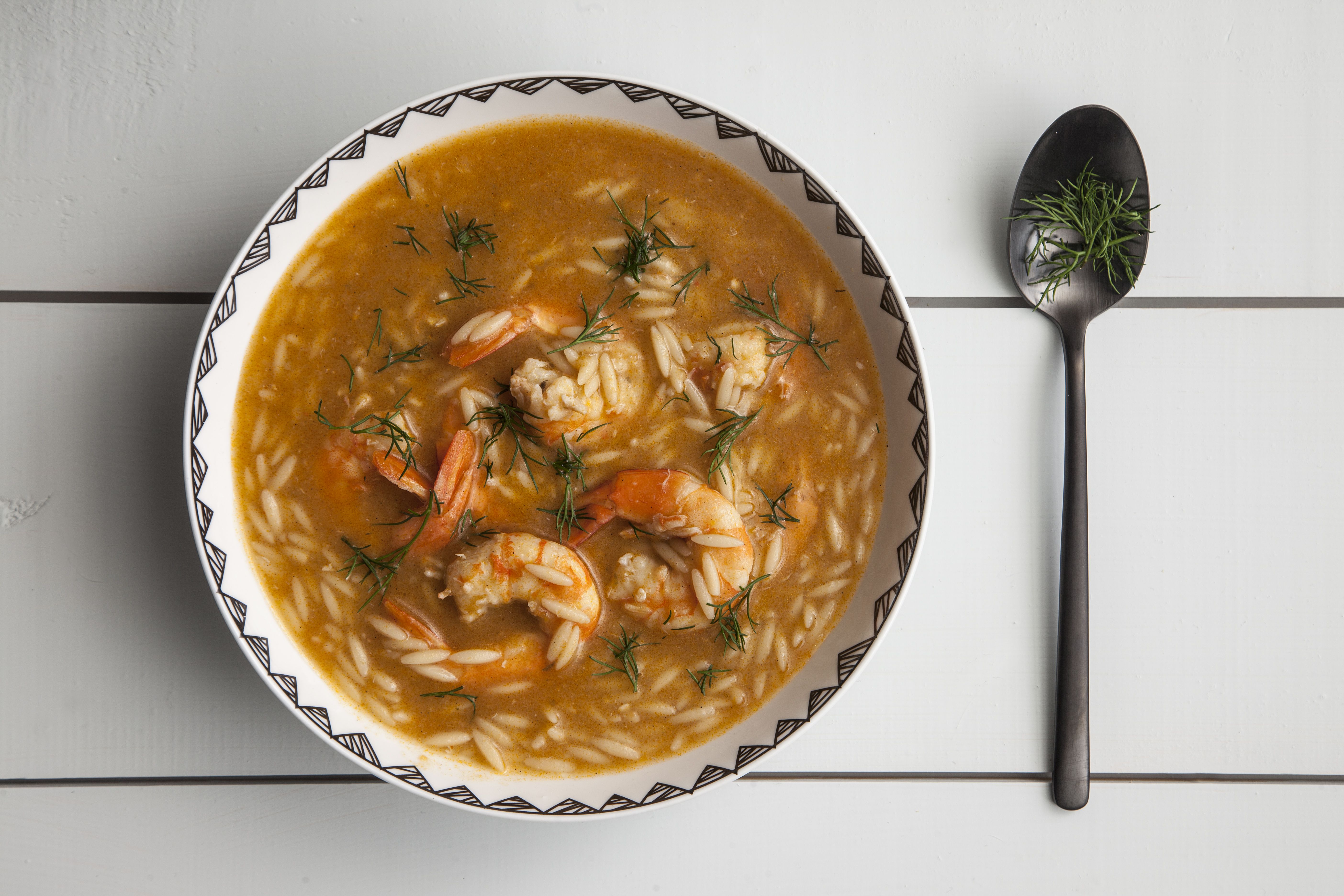 Ξαναρίχνουμε τον ζωμό με τα λαχανικά στην κατσαρόλα, προσθέτουμε το κριθαράκι και το ελαιόλαδο και βράζουμε μέχρι να γίνει το κριθαράκι (15 λεπτά περίπου). Τέλος, προσθέτουμε τις καθαρισμένες γαρίδες, τον άνηθο ψιλοκομμένο και τον χυμό λεμονιού.