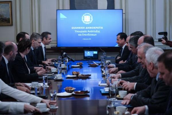 Ο πρωθυπουργός Κυριάκος Μητσοτάκης συναντήθηκε σήμερα στο Μέγαρο Μαξίμου με την ηγεσία του υπουργείου Ανάπτυξης και Επενδύσεων, στο πλαίσιο της αξιολόγησης και του προγραμματισμού του κυβερνητικού έργου. Αξιολόγησε θετικά τις επιδόσεις του Άδωνι Γεωργιάδη και έθεσε ψηλά στην ατζέντα για το επόμενο διάστημα την εκκίνηση της επένδυσης στο Ελληνικό.