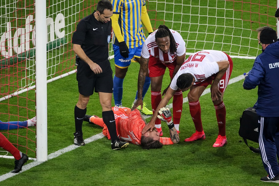 Ο Πορτογάλος τερματοφύλακας, λίγο πριν τη συμπλήρωση μισής ώρας αγώνα, δέχθηκε ένα εγκληματικό χτύπημα από τον Αντονι Μουνιέ στο κεφάλι και χρειάστηκε να του γίνουν 15 ράμματα.