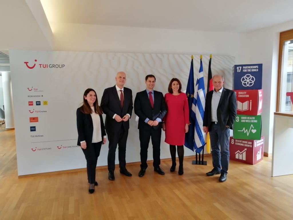 «H στρατηγική του Υπουργείου Τουρισμού προχωράει και υλοποιείται σύμφωνα με τον αρχικό σχεδιασμό. Η Γερμανική τουριστική αγορά είναι από τις πλέον σημαντικές για την Ελλάδα. Περίπου 4 εκατομμύρια έρχονται κάθε χρόνο και το 2018 άφησαν 2,8 δις ευρώ. Αποφάσισα να έρθω στο Βερολίνο, θέλοντας να περάσω ένα διπλό μήνυμα: Πρώτον, την εμπιστοσύνη μας προς τη γερμανική αγορά παρά τη ματαίωση της ΙΤΒ και δεύτερον, ότι ο ελληνικός τουρισμός συνεχίζει τη δυναμική του πορεία», ανέφερε ο Υπουργός Τουρισμού μετά τη συνάντηση που είχε με τον κ. Sebastian Ebel, μέλος του ΔΣ του Ομίλου και CEO Hotels & Resorts, την κυρία Helen Caron,Διευθύντρια Purchasing της TUI Group και την κυρία Antonia Bouka, Head of Public Policy-Destinations.