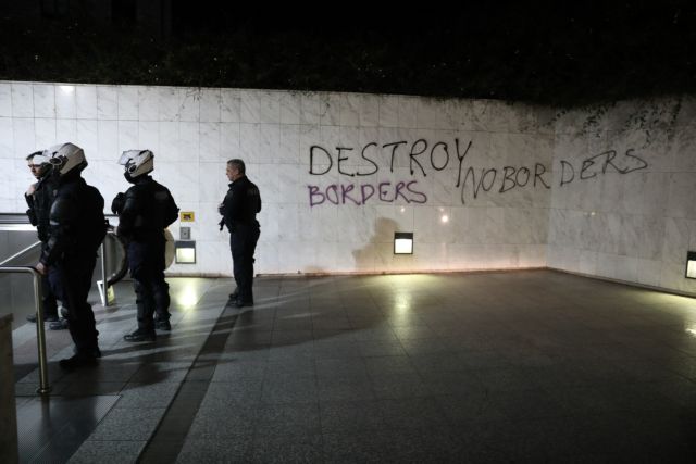 Καταδρομική επίθεση στο σταθμό του μετρό Ακρόπολη, πραγματοποίησε λίγο πριν τα μεσάνυχτα, ομάδα άνω των 20 κουκουλοφόρων, βανδαλίζοντας με σπρέι αγάλματα που εκτίθενται στον σταθμό.