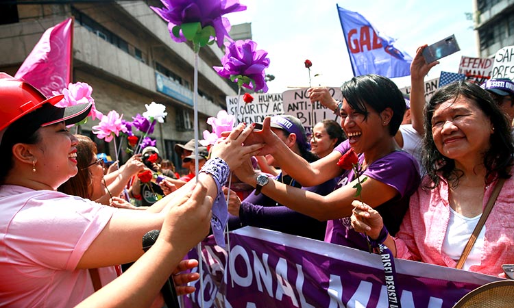 Εκατοντάδες γυναίκες και άνδρες έκαναν πορεία στην πρωτεύουσα των Φιλιππίνων, τη Μανίλα, και έκαψαν ένα ομοίωμα του προέδρου Ροντρίγκο Ντουτέρτε, τον οποίον κατηγορούν για μισογυνισμό.