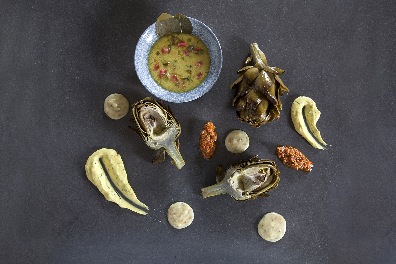 Ανάβουμε το μάτι και ψήνουμε σε πολύ χαμηλή φωτιά (ίσα να βράζει) για 25′. Τις αφήνουμε να κρυώσουν και τις στραγγίζουμε σε χαρτί κουζίνας. Τραβάμε τα φύλλα (αφαιρούνται πολύ εύκολα). Με ένα κουταλάκι αφαιρούμε το τριχωτό μέρος της καρδιάς και σερβίρουμε τις αγκινάρες με συνοδευτικό της αρεσκείας μας. Μπορείτε να επιλέξετε ένα ή και όλα τα παρακάτω: