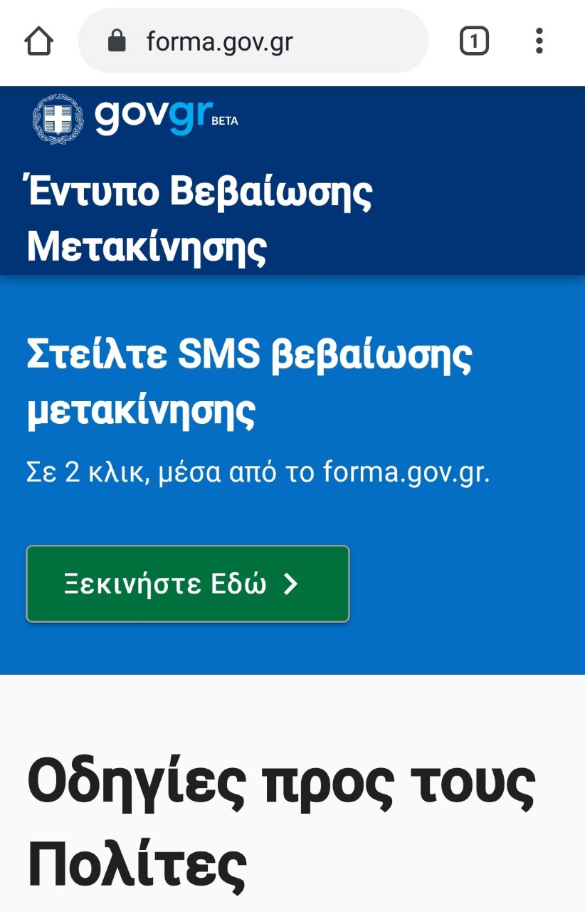 Βήμα 1: οι πολίτες θα πρέπει να μπουν, από το κινητό τους τηλέφωνο, στην ιστοσελίδα forma.gov.gr