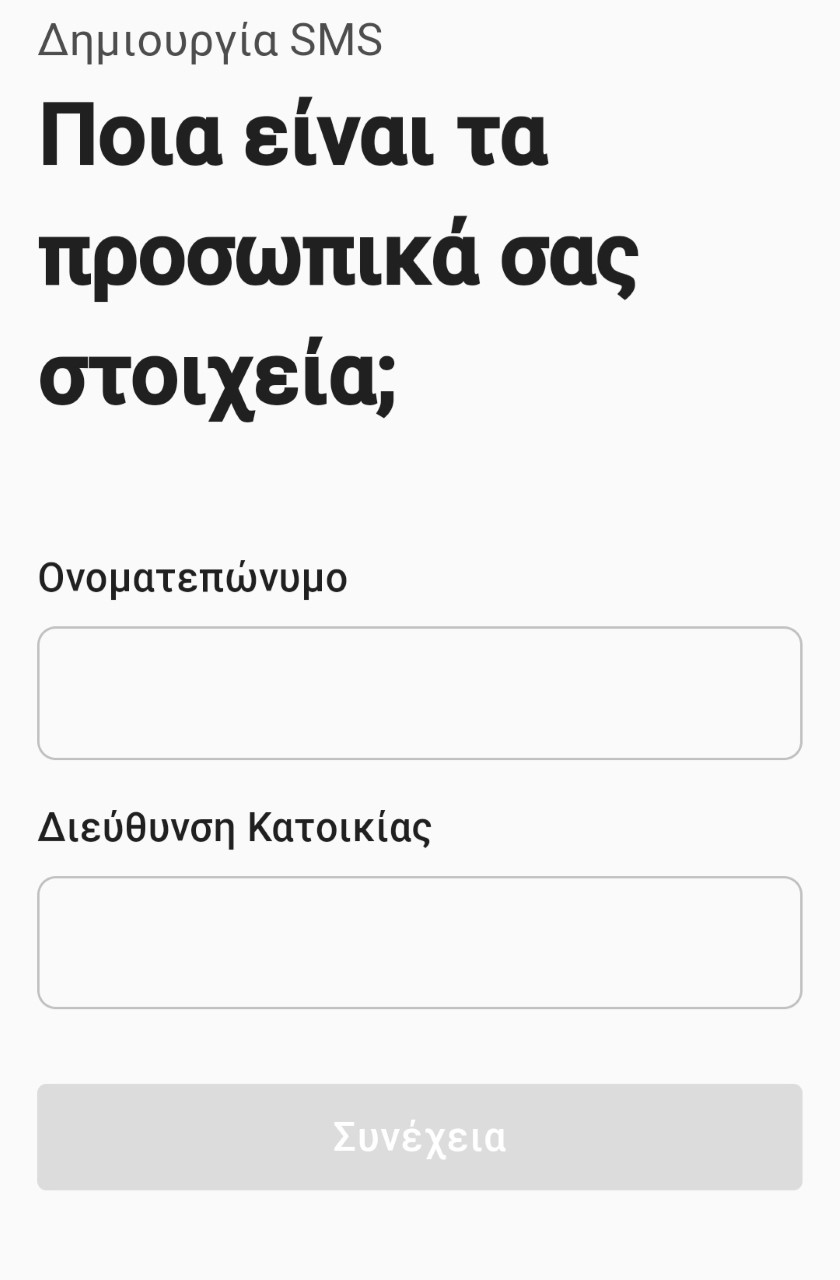 Βήμα 3: στην επόμενη σελίδα θα πρέπει να συμπληρώνει το ονοματεπώνυμό του, την διεύθυνση κατοικίας του και πατήσει «συνέχεια».