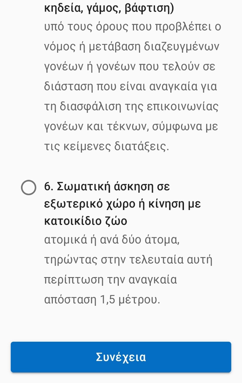 Βήμα 4: Στη συνέχεια εμφανίζεται η λίστα με τους λόγους μετακίνησης. Ο χρήστης αφού επιλέξει έναν, κάθε φορά, από αυτούς, πατάει το δεύτερο «κλικ» για να ολοκληρώσει την διαδικασία. Τότε το οδηγείται απευθείας στην εφαρμογή των SMS, όπου εμφανίζεται το κείμενο που πρέπει να σταλεί στο 13033. Με τον χρήστη απλά να πρέπει να πατήσει την εντολή «Αποστολή»