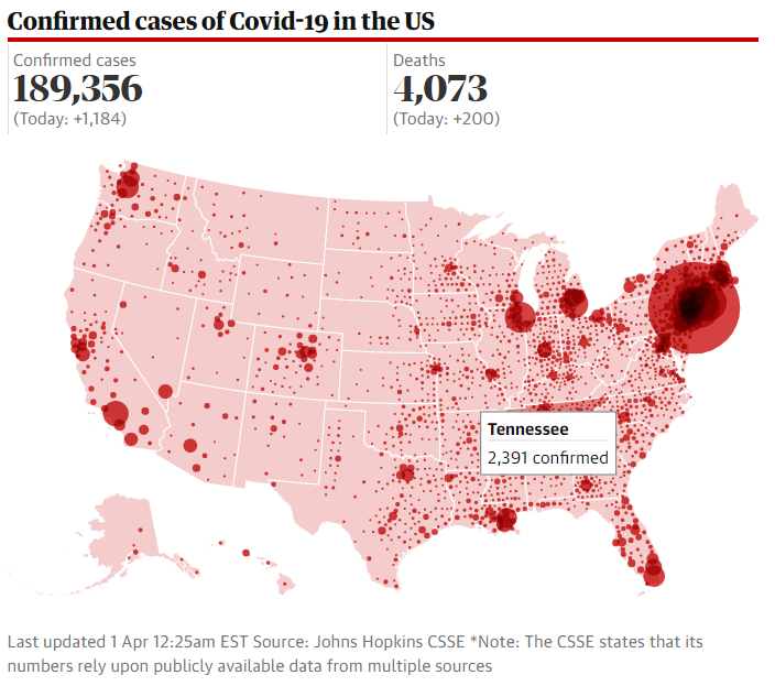 O αριθμός των επιβεβαιωμένων περιπτώσεων του Covid-19 συνεχίζει να αυξάνεται στις ΗΠΑ. Ο αντιπρόεδρος Mike Pence, επιβλέπει την ανταπόκριση των ΗΠΑ απέναντι στον κορωνοϊό. Τα συνολικά κρούσματα φτάνουν τα 189.356 και οι νεκροί τους 4.073.