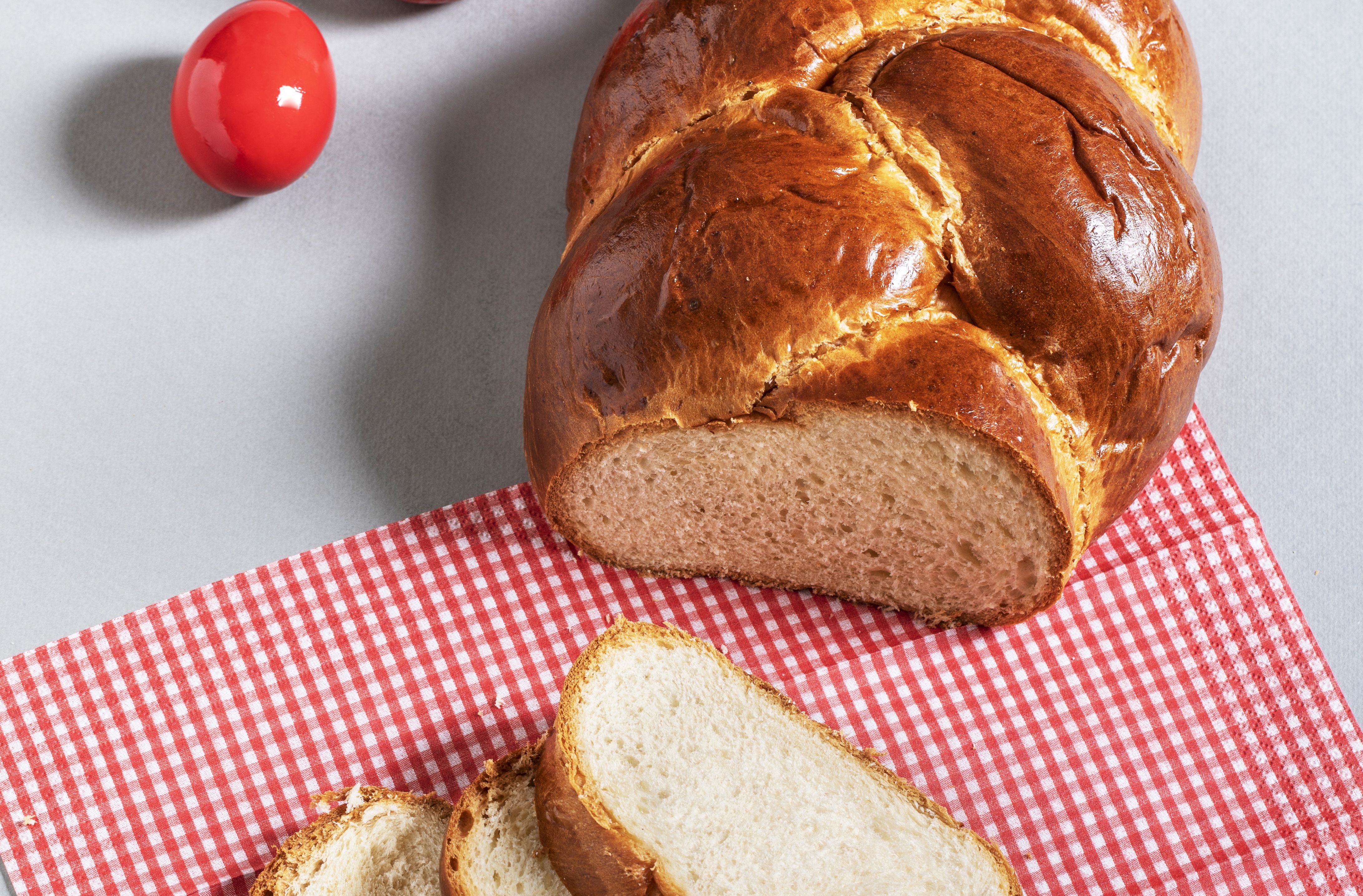 Ρίχνουμε στον κάδο του μίξερ το αλεύρι, τη μαγιά, τη μαστίχα και το μαχλέπι. Προσθέτουμε το γάλα με τη λιωμένη ζάχαρη και τα αβγά και αρχίζουμε να ζυμώνουμε με το εξάρτημα του γάντζου ή με τα χέρια. Προσθέτουμε σιγά-σιγά το βούτυρο και συνεχίζουμε να ζυμώνουμε για 15-20 λεπτά.
