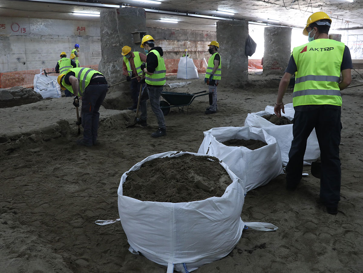 Συνοδευόμενη από τον Πρόεδρο και τον Διευθύνοντα Σύμβουλο της Αττικό Μετρό, κ.κ. Νίκο Ταχιάο και Νίκο Κουρέτα, η ηγεσία του Υπουργείου βρέθηκε στο Σταθμό Βενιζέλου όπου βρίσκονται σε εξέλιξη εργασίες αποκάλυψης των αρχαιοτήτων που είχαν καλυφθεί παλαιότερα με άμμο προκειμένου να προστατευθούν από τυχόν φθορές, στο πλαίσιο των κατασκευαστικών έργων. Ξεκινώντας από τη Δυτική πλευρά του Σταθμού, κατέβηκαν στο χώρο όπου πραγματοποιούνται οι εργασίες απομάκρυνσης της άμμου, ενώ η περιήγηση συνεχίστηκε και ολοκληρώθηκε σε όλη την έκταση του μελλοντικού επιπέδου αρχαιοτήτων του σταθμού.