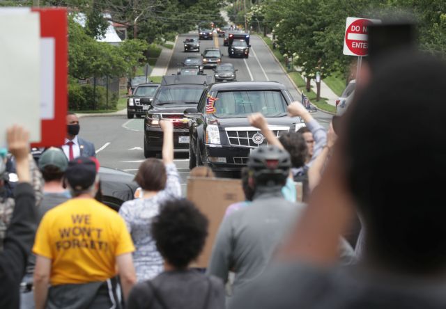 Ο Τραμπ διέψευσε επίσης ότι τον μετέφεραν σε ένα ασφαλές καταφύγιο λόγω των διαδηλώσεων που ήταν σε εξέλιξη έξω από τον Λευκό Οίκο, λέγοντας ότι πήγε όντως εκεί αλλά απλώς για να επιθεωρήσει τον χώρο.