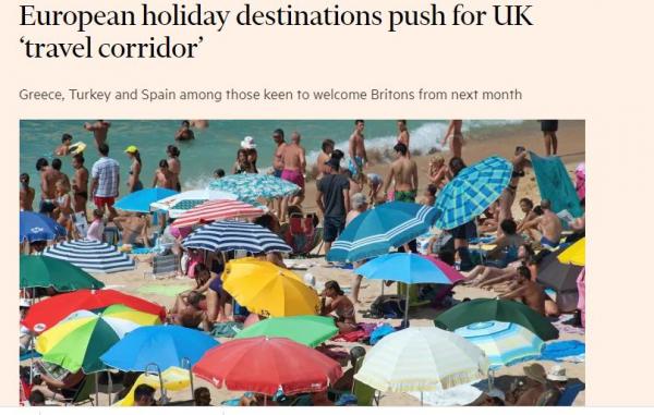 Οι Financial Times στο δημοσίευμα υπενθυμίζουν ότι βάσει των κανόνων που ισχύουν στη Βρετανία για τον περιορισμό διασποράς του κοροναϊού οι περισσότεροι τουρίστες θα πρέπει να μπαίνουν σε αυτοαπομόνωση όταν επιστρέφουν.