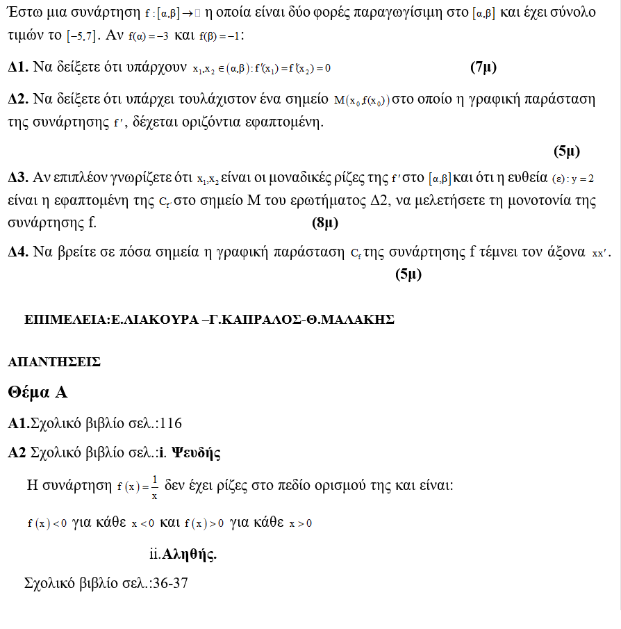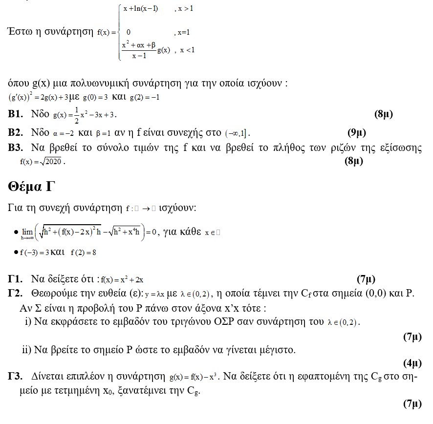 Παρακάτω μπορείτε να δείτε προτεινόμενο θέμα Πανελληνίων εξετάσεων για τα μαθηματικά